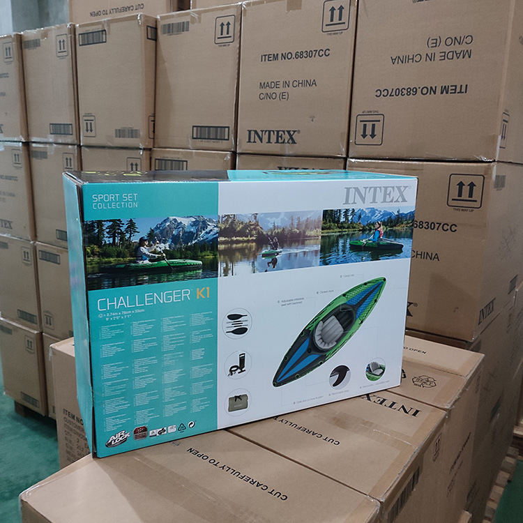 Kayak gonflable pas cher 68305 Challenger K1 pour une personne avec rame et pompe, kayaks à siège unique