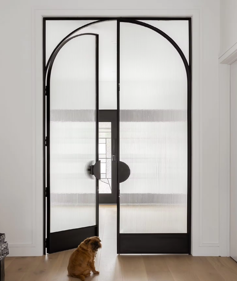 Porte en arc bon marché avec lignes droites Porte battante en verre à battant français en acier pour l'intérieur