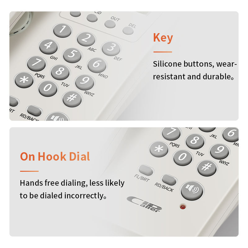 Téléphone de bureau filaire basique pas cher, prix de gros, avec affichage de l'identification de l'appelant, boutons en silicone, téléphone filaire pour entreprise