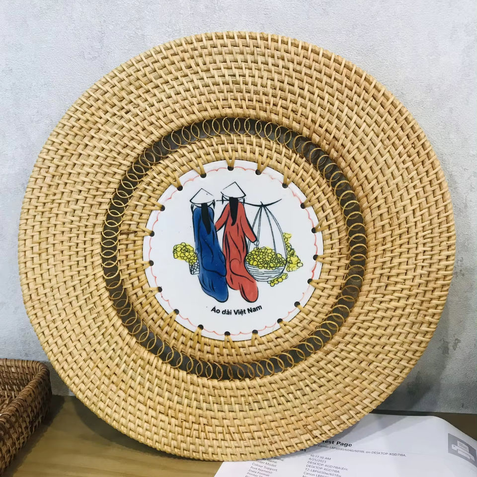 Napperons en rotin bon marché et beaux pour la salle à manger Napperons tissés en rotin pour la fête avec un design personnalisé en céramique