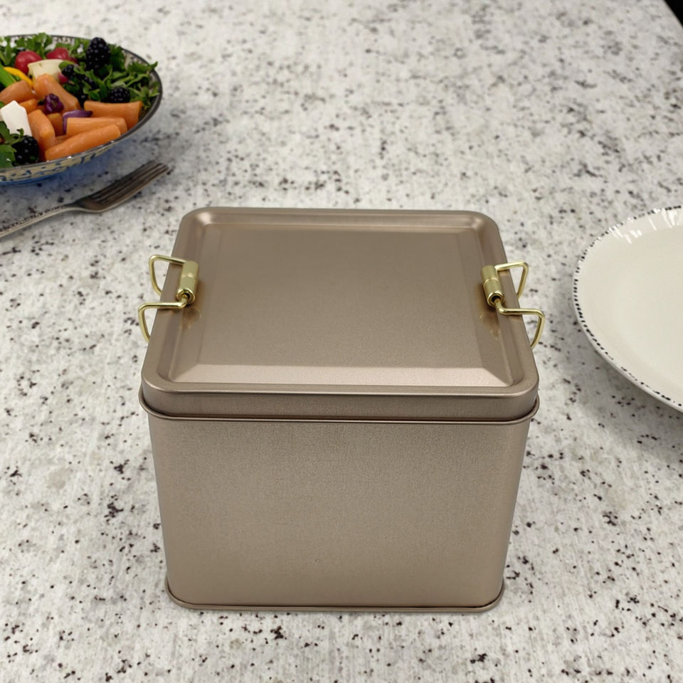 Boîte en métal vide carrée vide bon marché de couleur bleue pour biscuits, bonbons et chocolat avec boucle