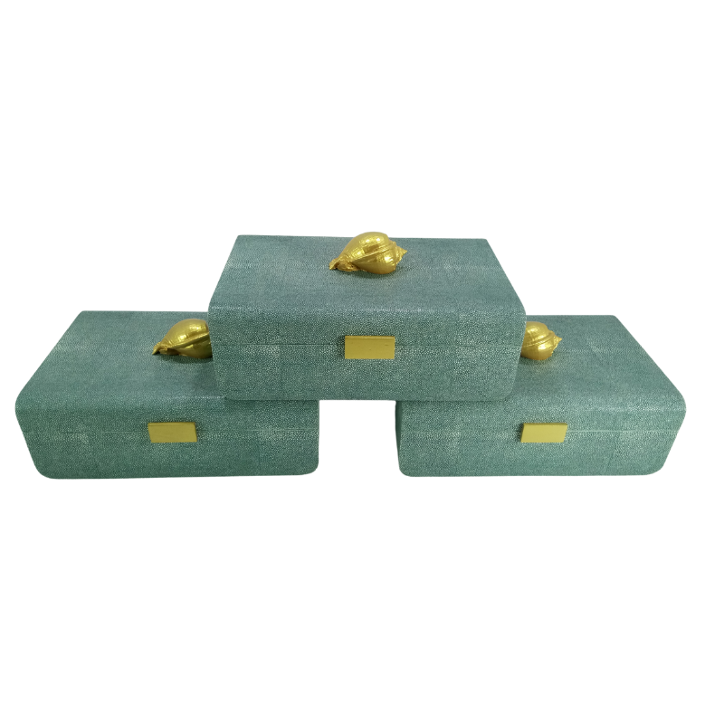 Boîtes à bijoux en faux cuir shagreen personnalisées en gros à prix abordable avec serrure en laiton et design coquille, marque DPC, modèle 0103a Binh Duong
