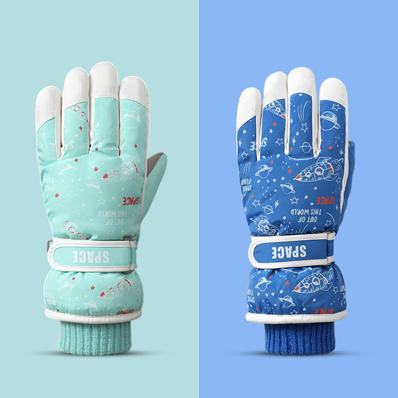 Gants d'hiver pour enfant garçon, mignons, à doigts entiers, coupe-vent, antidérapants, en polyester, avec fermeture à bouton, pour le snowboard