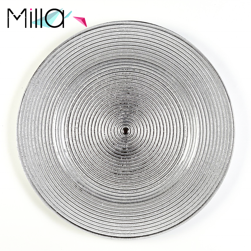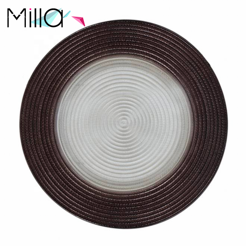 Nom du produit:Plaques de chargeur en verre à rayures en spirale de tourbillon bordé d'or de jante de couleur bon marché