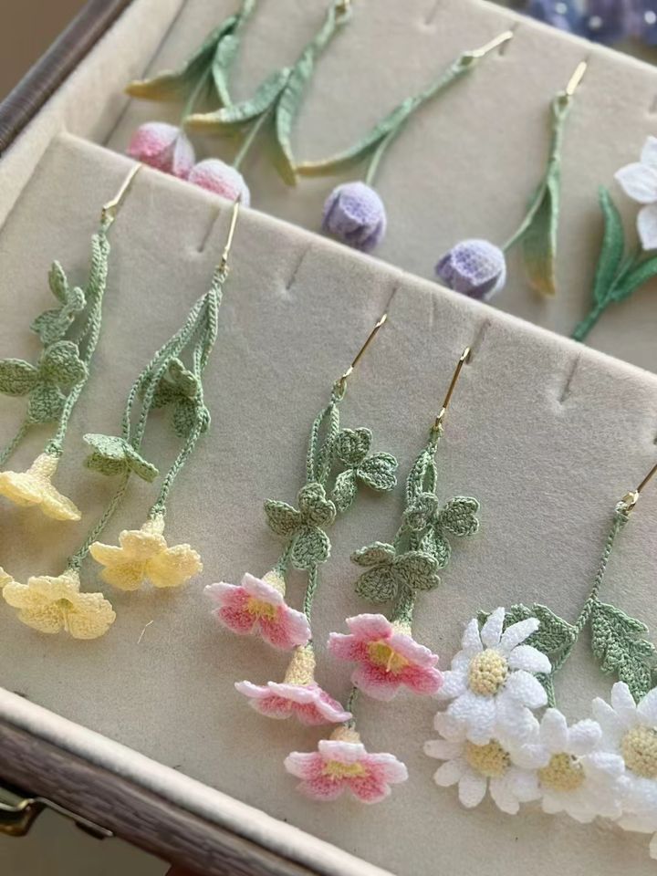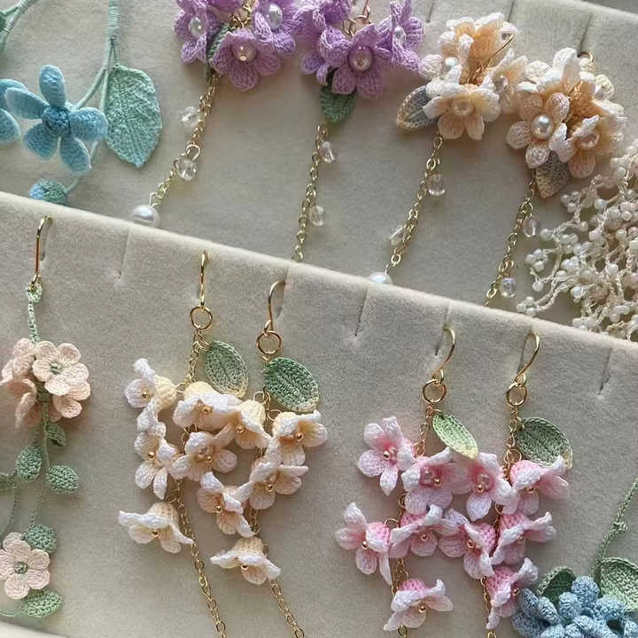 Boucles d'oreilles pas chères au crochet, micro-haak, bijoux faits main en forme de fleur, décorations d'oreille, mini-boucles d'oreilles pendantes au crochet, cadeau