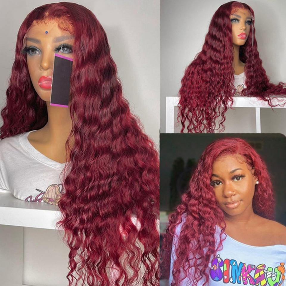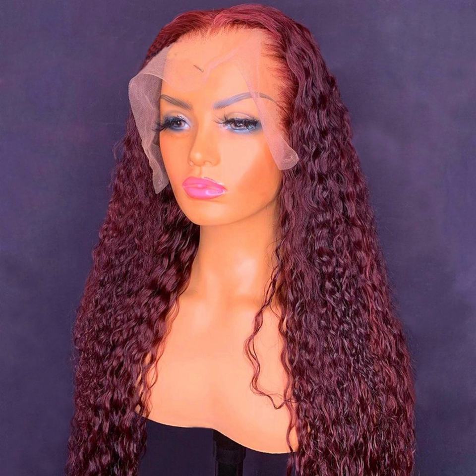 Perruque en dentelle complète HD en cheveux humains vierges brésiliens 100% naturels, ondulés bouclés, couleur rouge 99J, pas cher, pour femmes noires