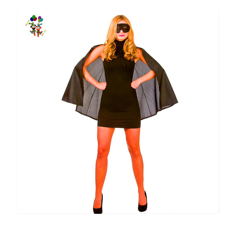 Capes de déguisement de fête en Polyester, couleur noire, bon marché, avec masque, HPC-2342