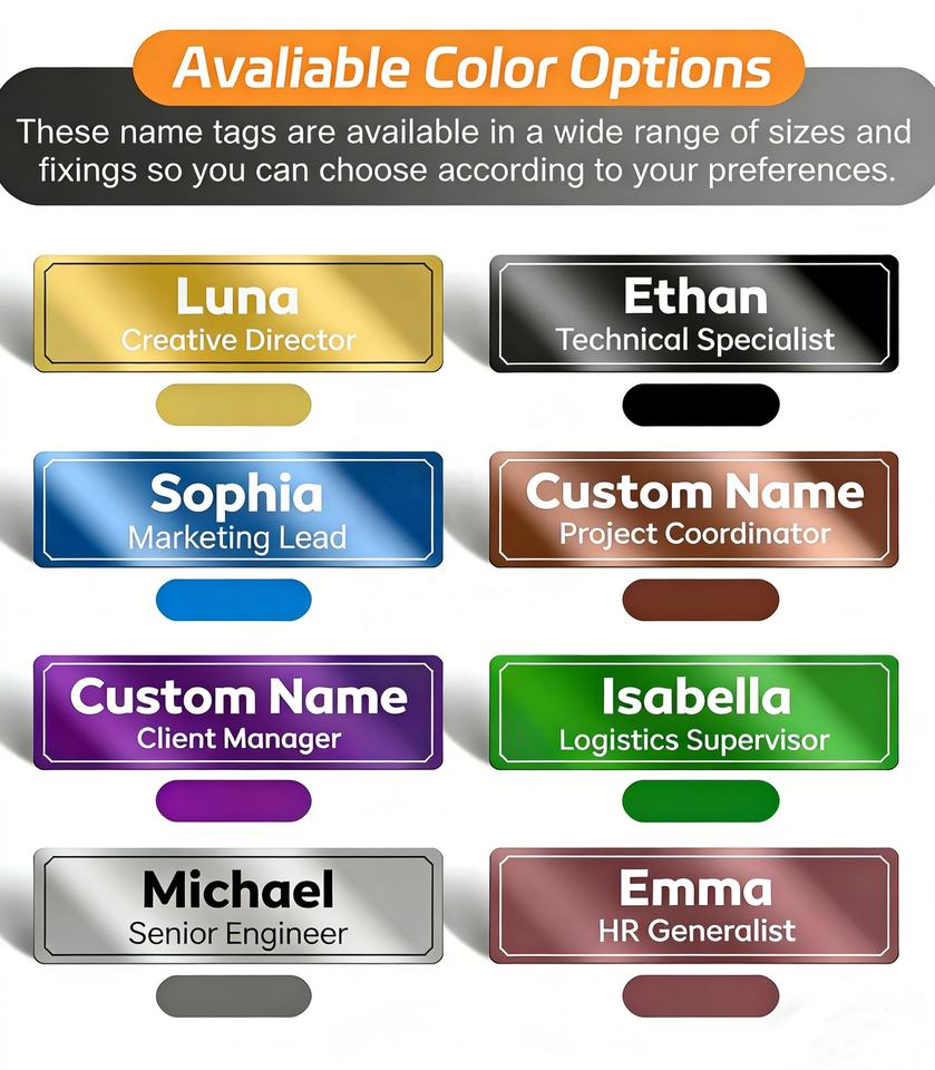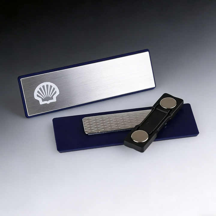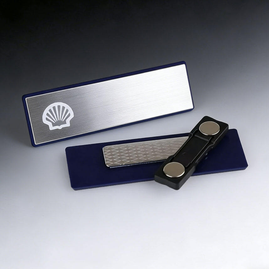 Plaque nominative métallique vierge personnalisée à prix abordable, étiquette nominative durable et réutilisable avec clip magnétique de sécurité pour hôpitaux, restaurants et commerces de détail