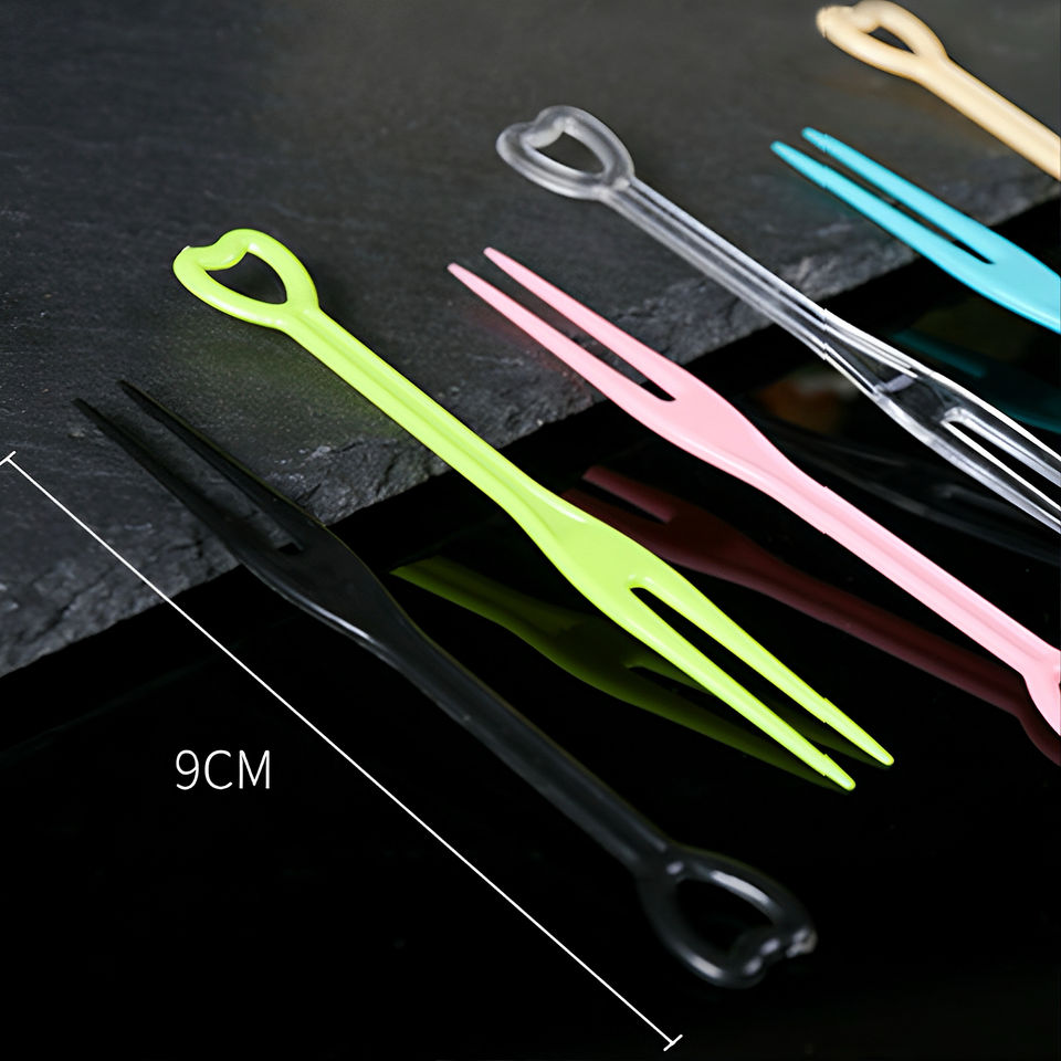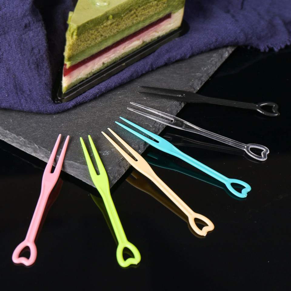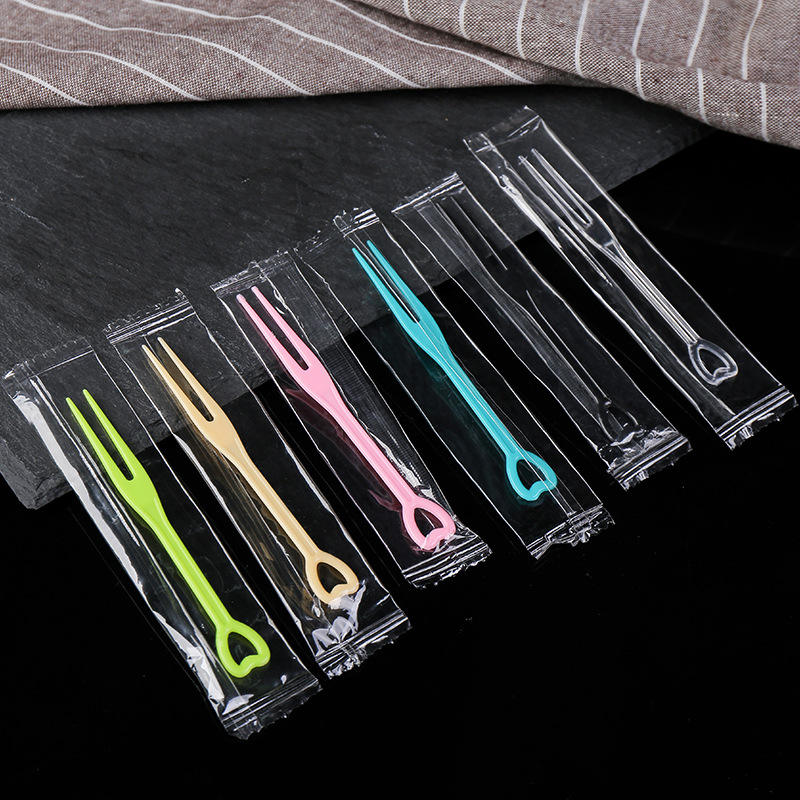 Mini fourchettes en plastique jetables portables de qualité alimentaire de haute qualité et de couleur personnalisée bon marché pour gâteau aux fruits