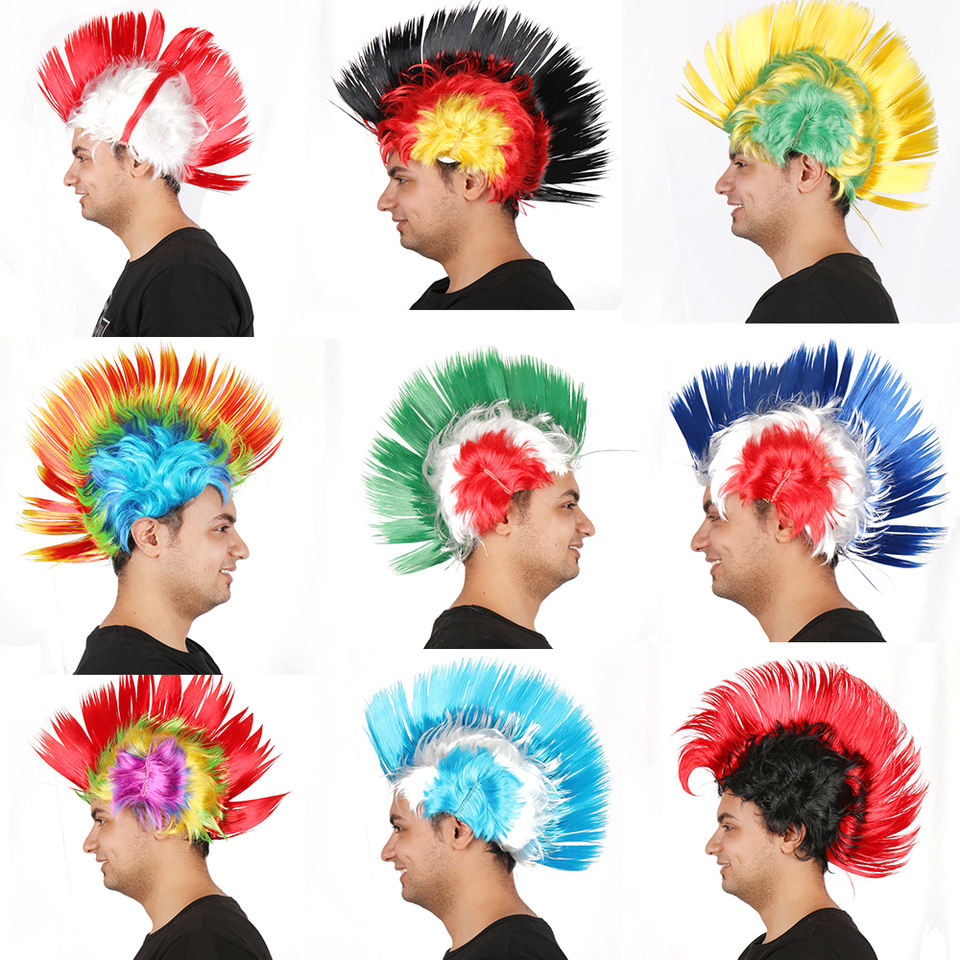 Perruque Mohawk Synthétique Personnalisée Pas Chère, Couleur au Choix, pour Fans de Sport, Fêtes, Halloween, Cosplay, Supporters de Football, Unisexe, Résistante à la Chaleur, Style Punk, Sans Colle