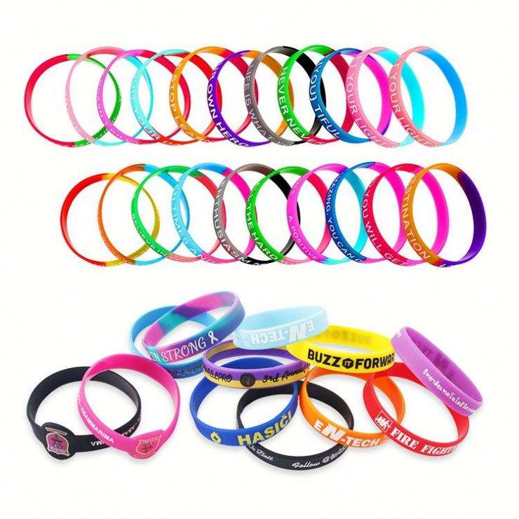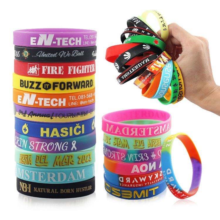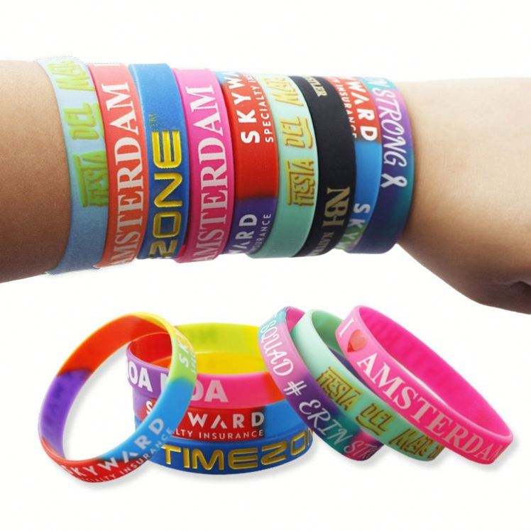 Bracelets personnalisés pas chers avec logo pour événements, imprimés par sublimation, en silicone élastique pour festivals, sans minimum de commande