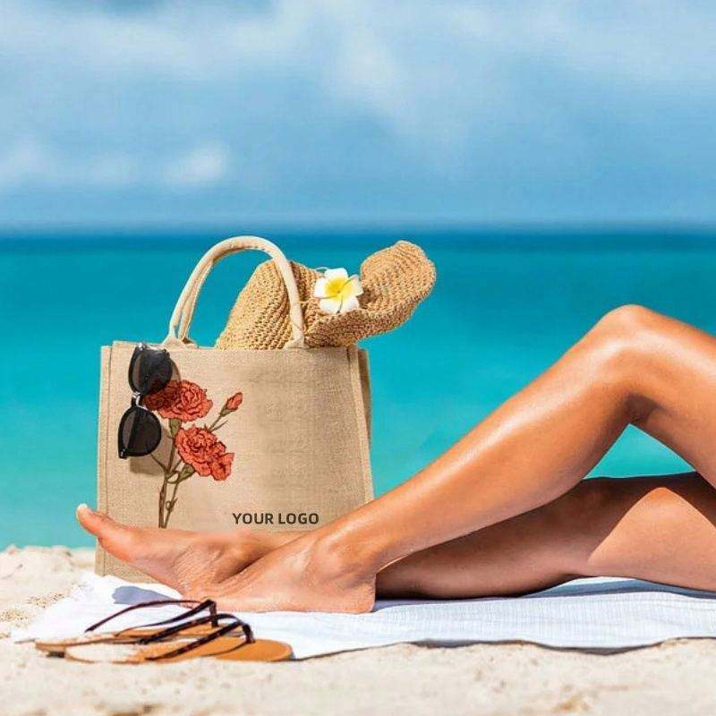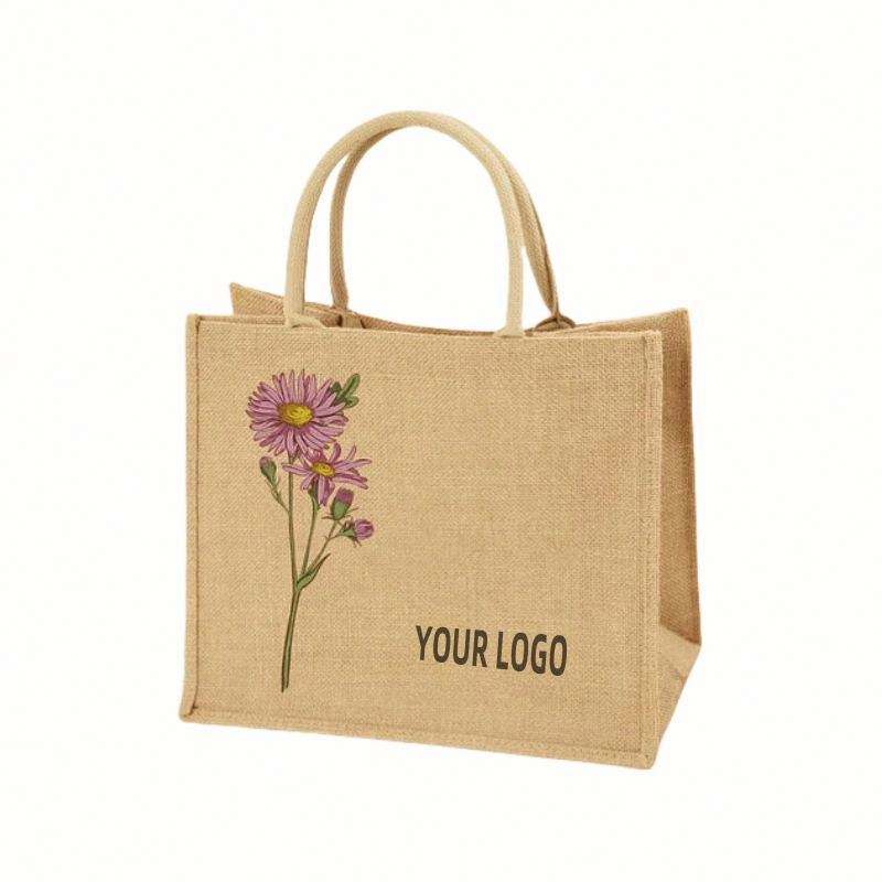 Cheap Custom Logo Printed Eco Recycle Natural Foldable Reusable Jute Burlap Linen Shopping Tote Bag