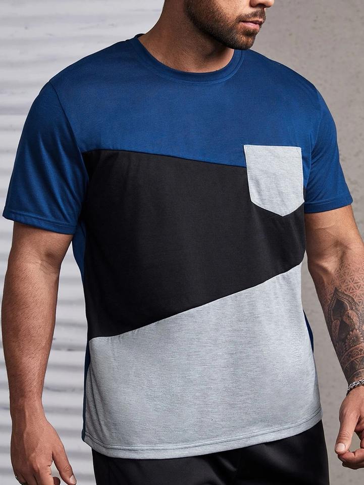 Cheap Custom Men's Color Block T-Shirt Round Neck Short Sleeve Cotton T Shirt OEM Logo Printing Casual Streetwear T-Shirts