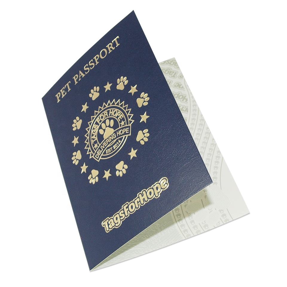 Impression de brochures personnalisées bon marché en papier offset et en carton, certificat de santé pour animaux de compagnie, passeport pour chat, chien, animal de compagnie