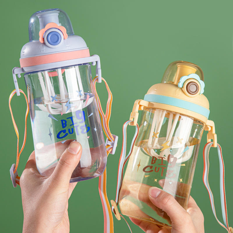 Pas cher Mignon 650ml Portable Potable Gourde Enfant Bouteille Sans BPA École Bébé Enfants Bouteille D'eau avec Paille/Filtre
