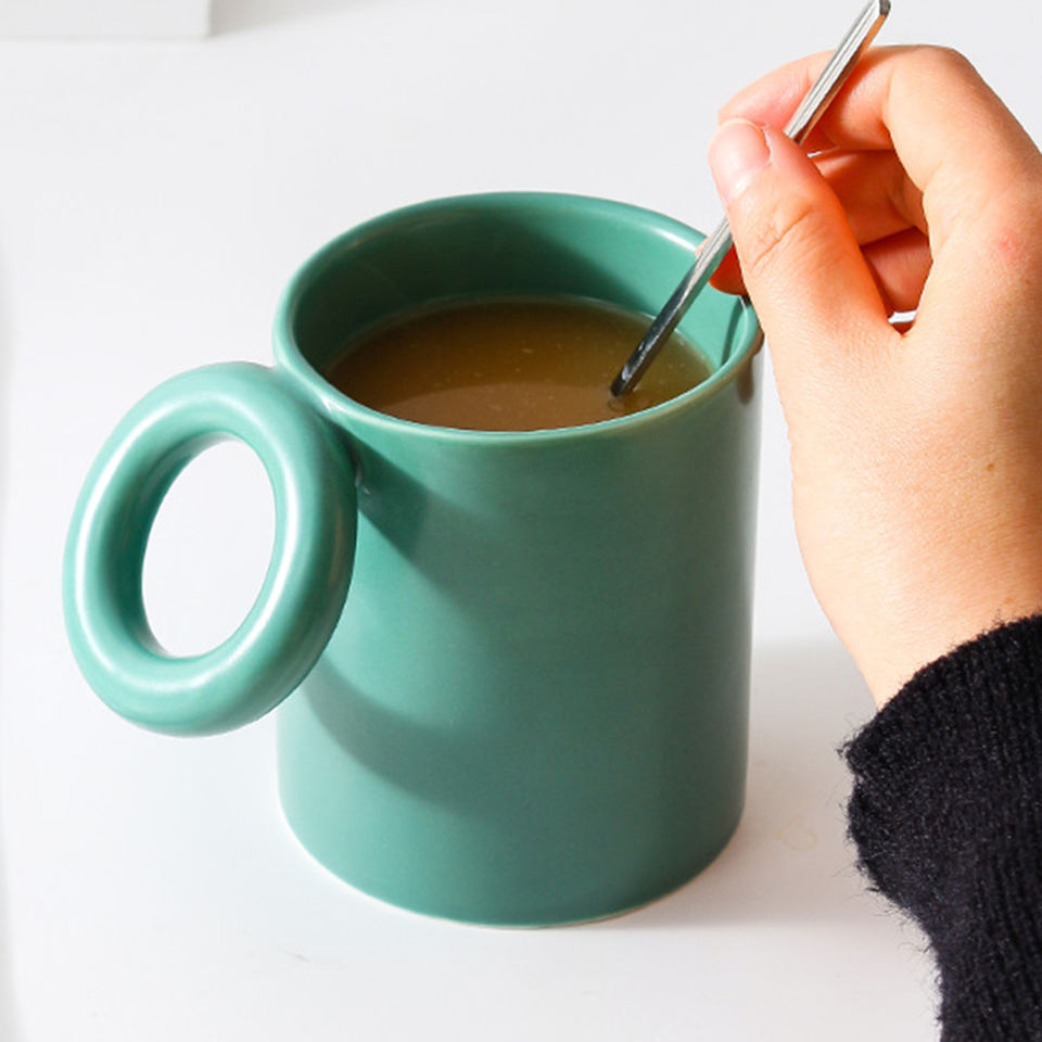Tasse à café ronde mignonne de petit déjeuner bon marché tasse à eau de bureau à domicile tasse à thé en céramique drôle de couleur verte