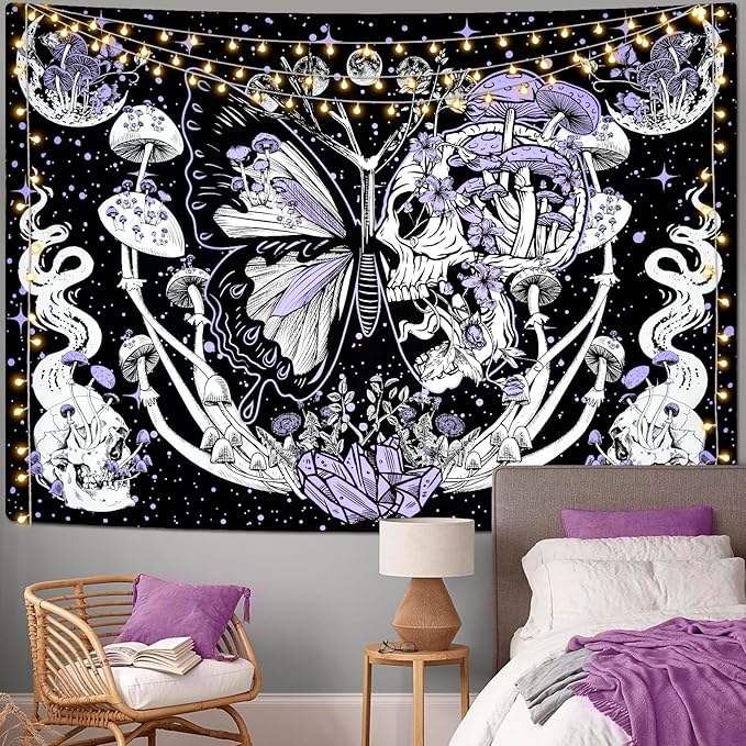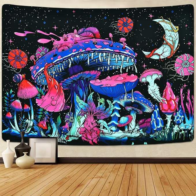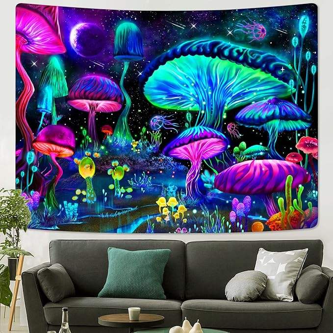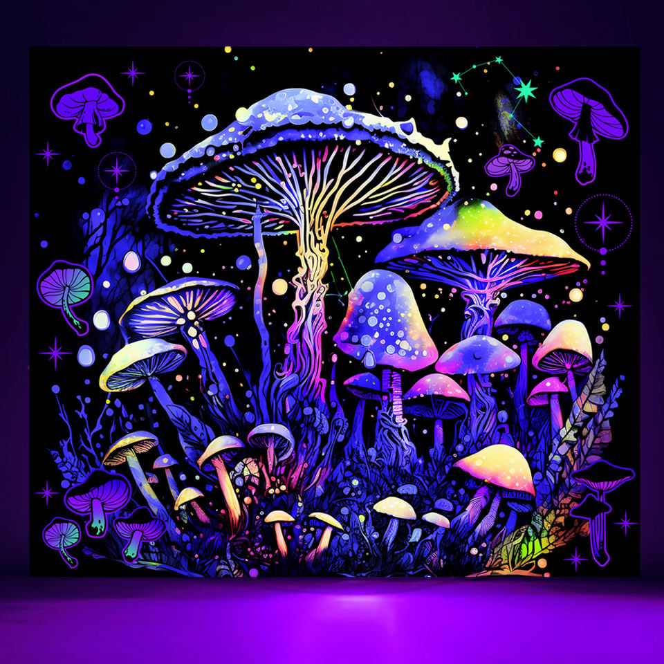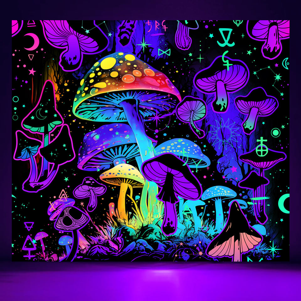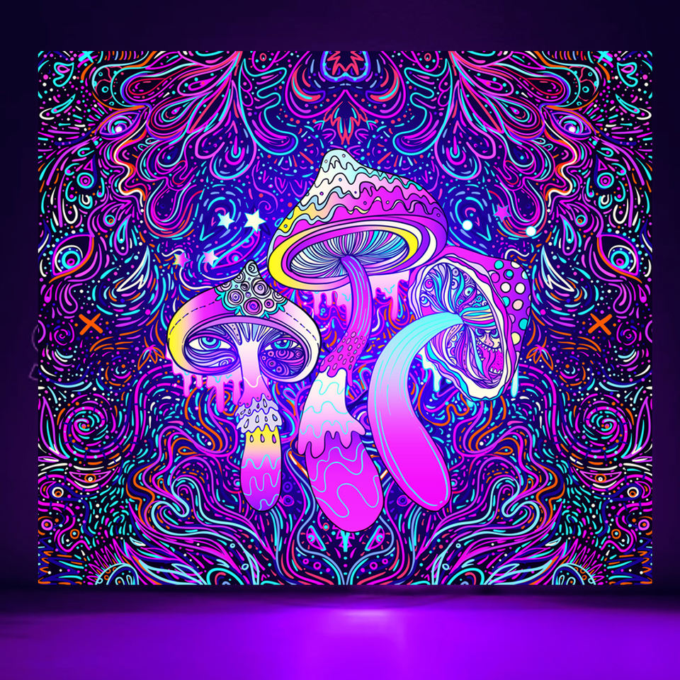 Décoration bon marché chambre suspendu personnalisé imprimé crapaud champignon Uv réactif lumière noire psychédélique Trippy tapisserie pour mur