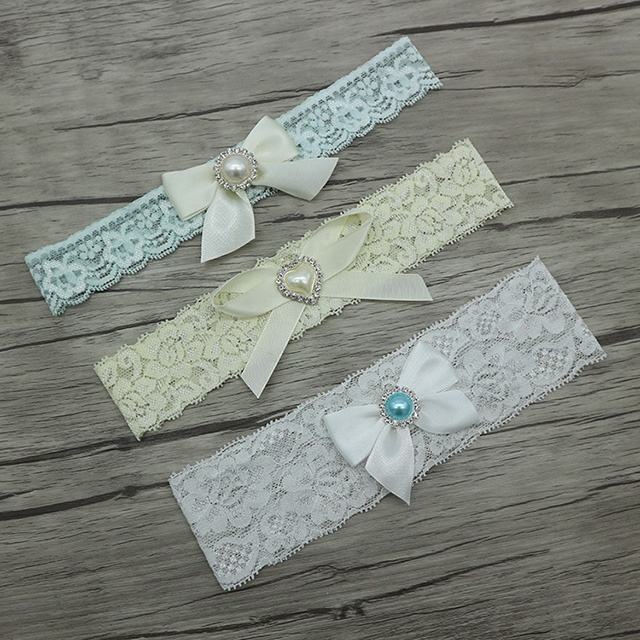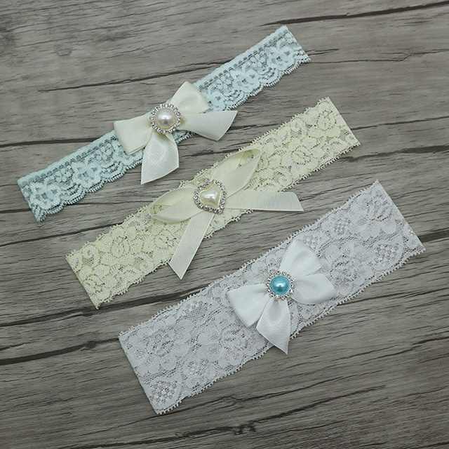 Jarretelles en dentelle pour mariée, jarretelles minces et très bon marché avec perles de couleur bleue, pour mariage