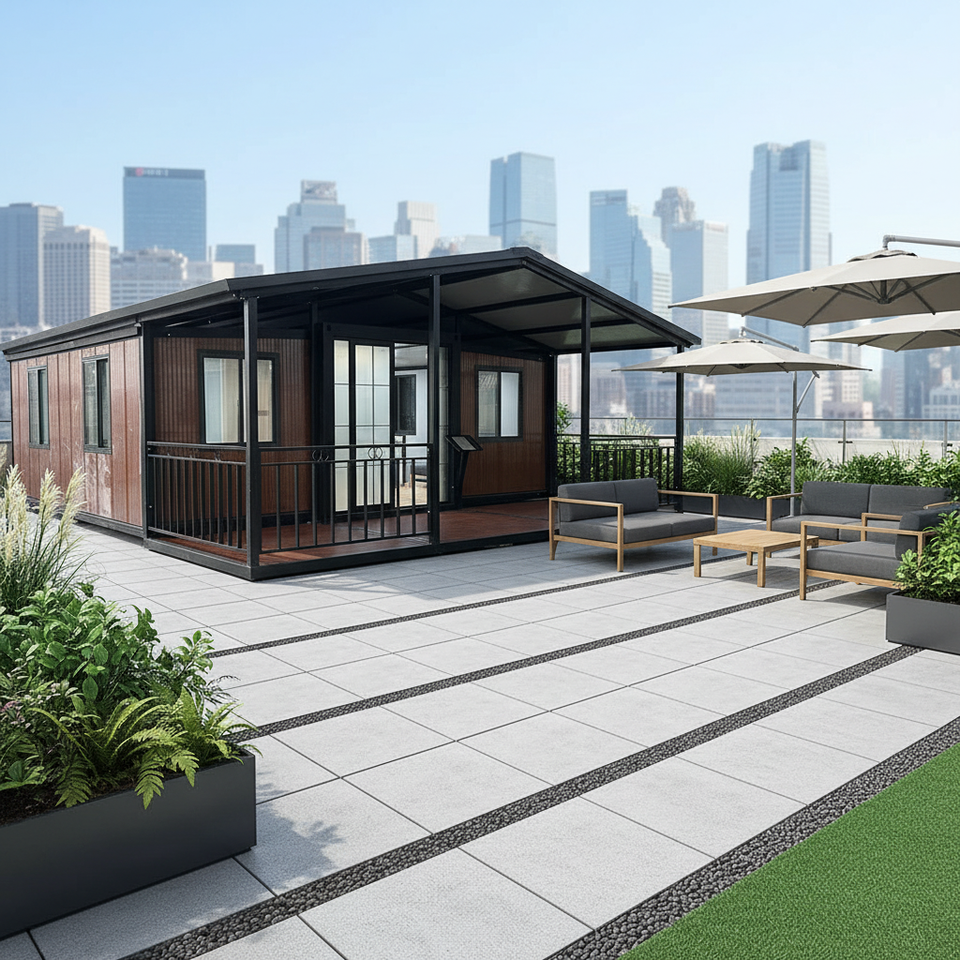 Vente directe économique : Mini-maison conteneur 40 pieds double largeur, 4 chambres, écologique, portable, mobile, personnalisable et extensible