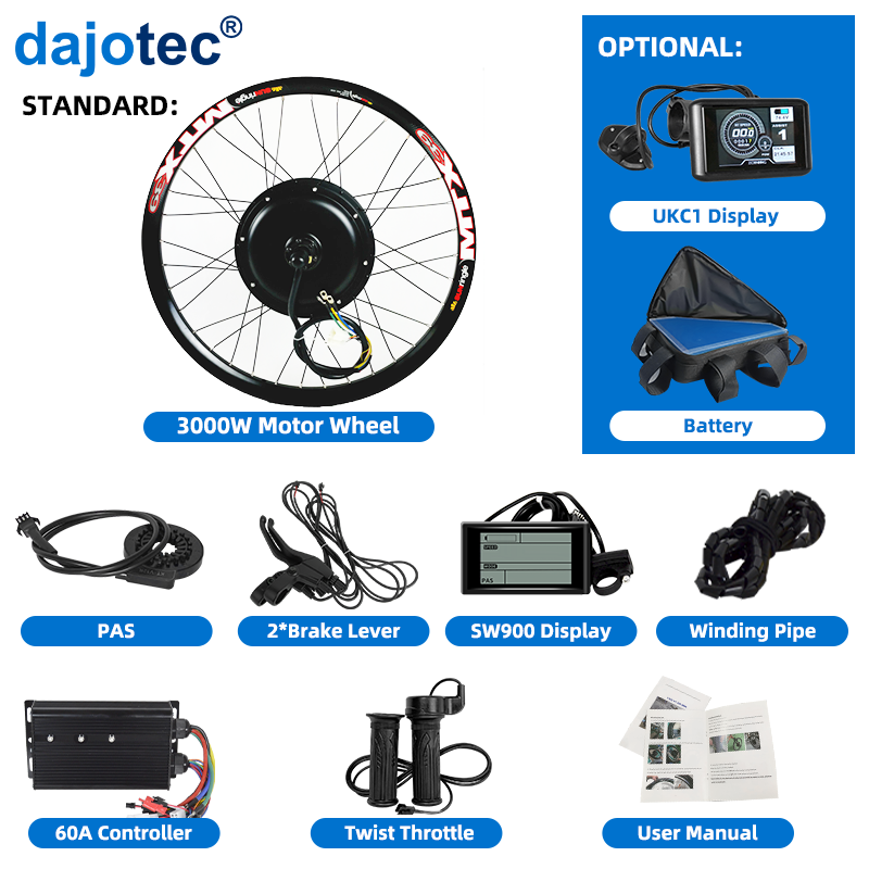 Kit de vélo électrique à jante MTX 48V-72V 1500W-5000W à prix abordable avec batterie 10-25Ah pour des trajets à haute puissance