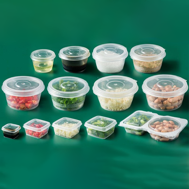 Petits récipients jetables bon marché pour sauce soja ou wasabi 0.75 1 1.5 2 3.25 Gobelets à gelée ronds en plastique transparent de 4 onces