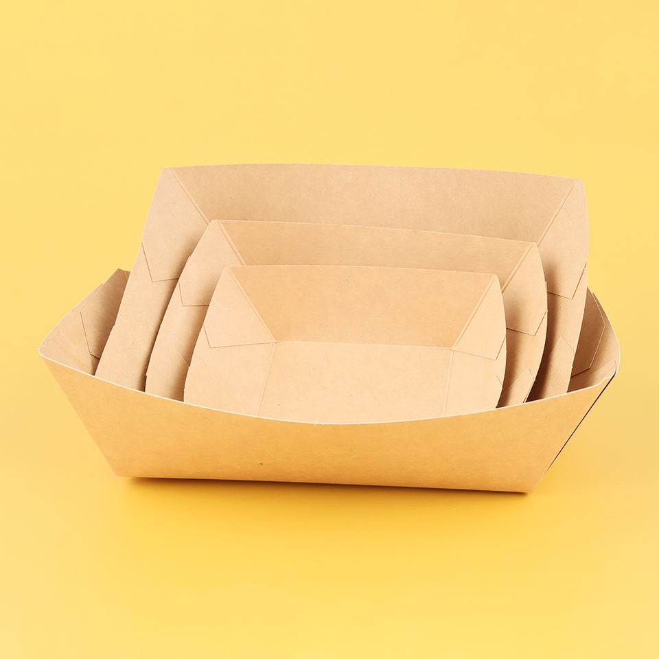 Plateau à collation jetable bon marché contenant du papier avec logo personnalisé pour salade de hot-dog takoyaki plateau rectangulaire de bateau en kraft pour restaurant