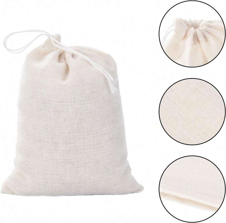 Sacs en mousseline beiges à cordon de serrage, écologiques et économiques, multi-usages pour le thé, les bijoux, les bougies, avec impression de logo