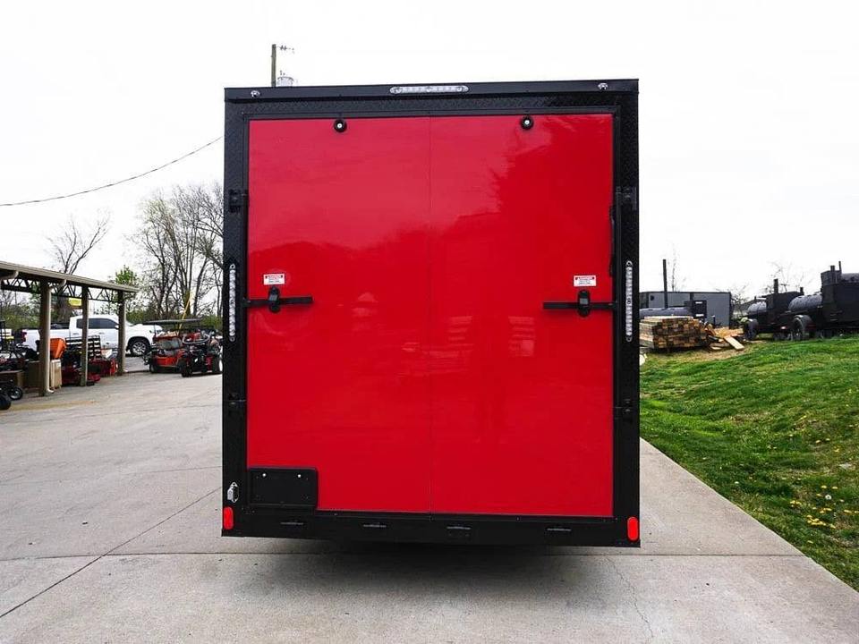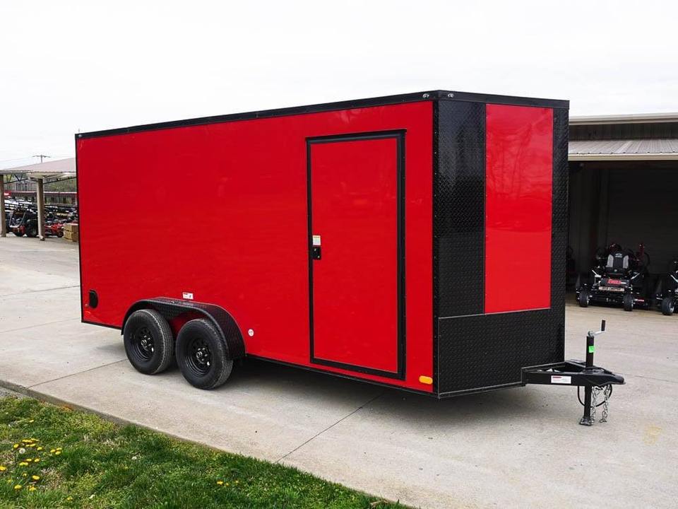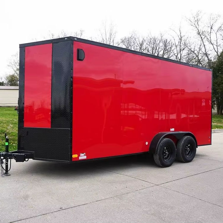 Remorque fermée bon marché 7x16, remorque fermée rouge à nez en V, paquet Blackout, essieu tandem, rangement