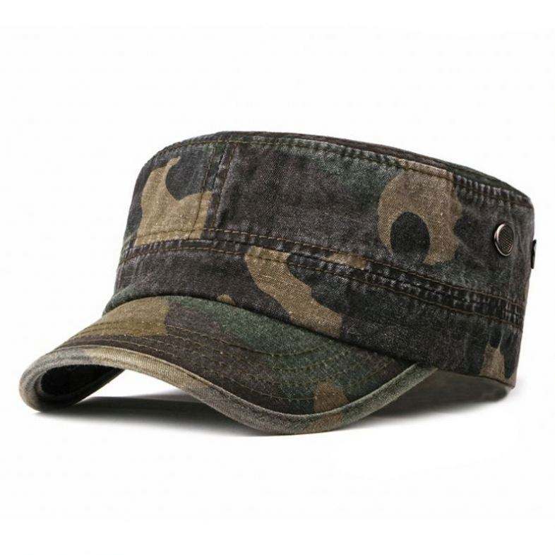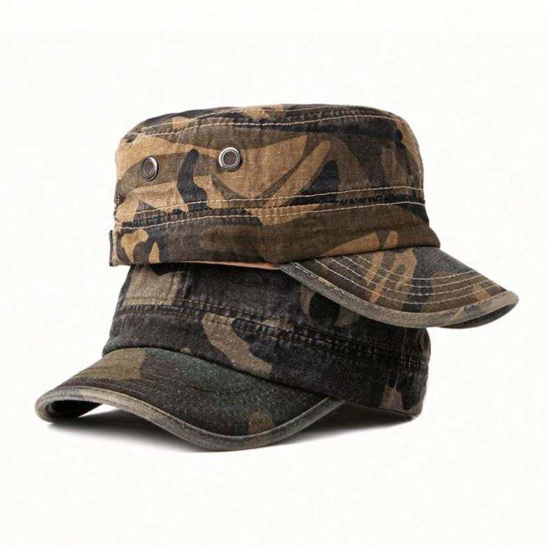 Casquette plate à 5 panneaux pas chère, style cadet, vintage, effet vieilli, camouflage, pour sports de plein air