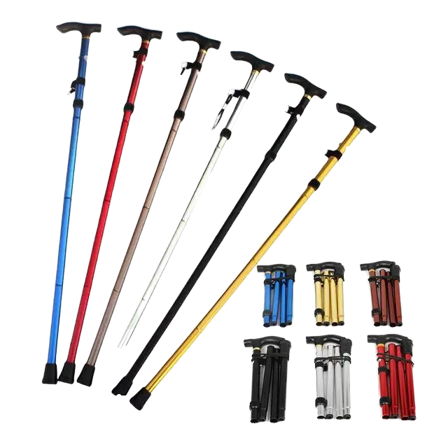 Canne de marche pliable légère en alliage d'aluminium avec poignée en caoutchouc moderne, réglable, pour personnes âgées, usage de luxe, sans éclairage
