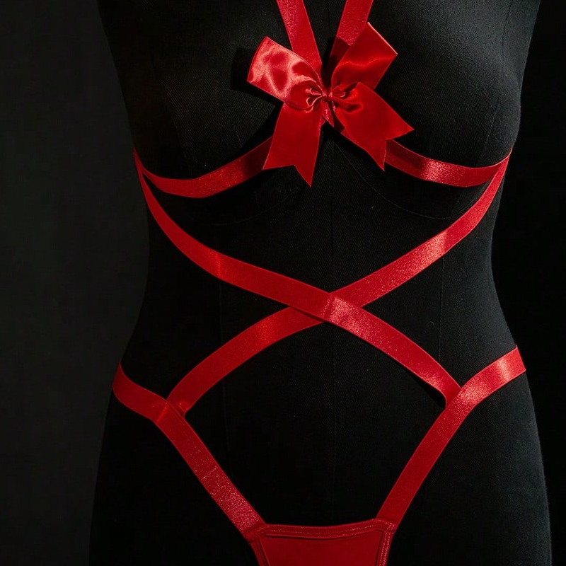 Lingerie érotique bon marché pour femmes, taille XXXL, lingerie sexy à bandeaux, soutien-gorge ouvert, gros seins, nœud, ensemble de lingerie pour la Saint-Valentin