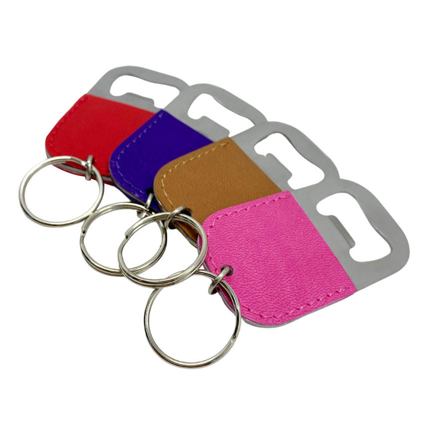 Cadeaux bon marché gravure laser avec logo personnalisé ouvre-bouteille en cuir PU porte-clés