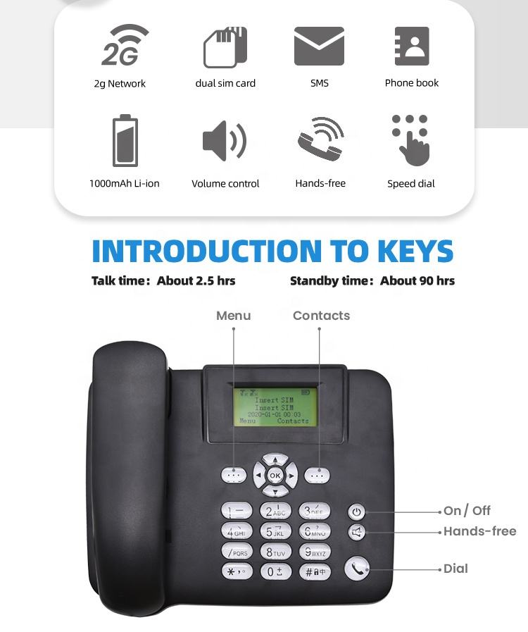 Téléphone fixe sans fil de bureau sans fil Gsm avec antenne TNC amovible