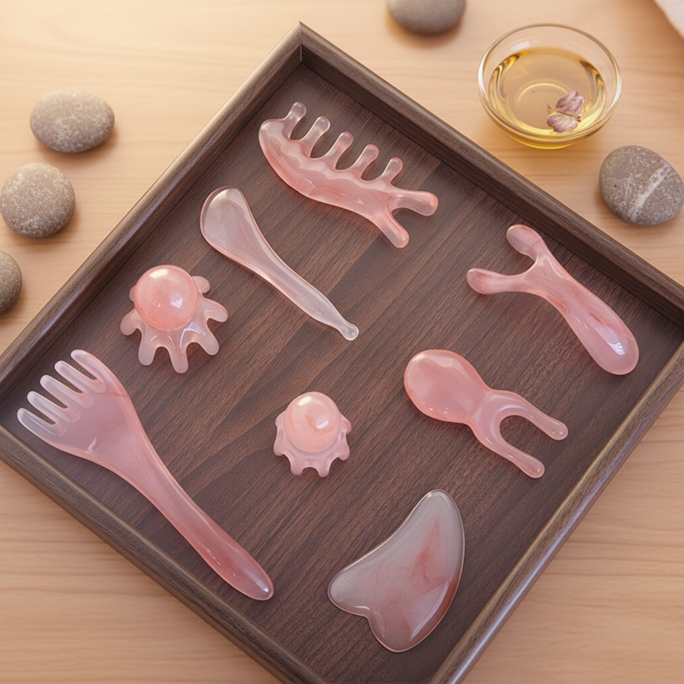 Outils de soins de santé portables économiques : Ensemble de brosses de massage Gua Sha pour le visage et les muscles, brosse pour les méridiens et peigne de massage tête d'octopus
