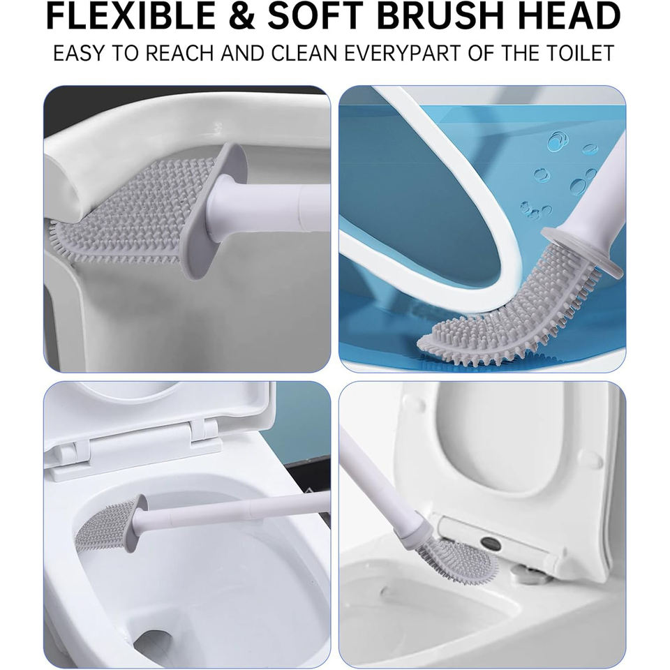Brosse de nettoyage WC en silicone à deux sections avec manche en plastique TPR souple, offre spéciale