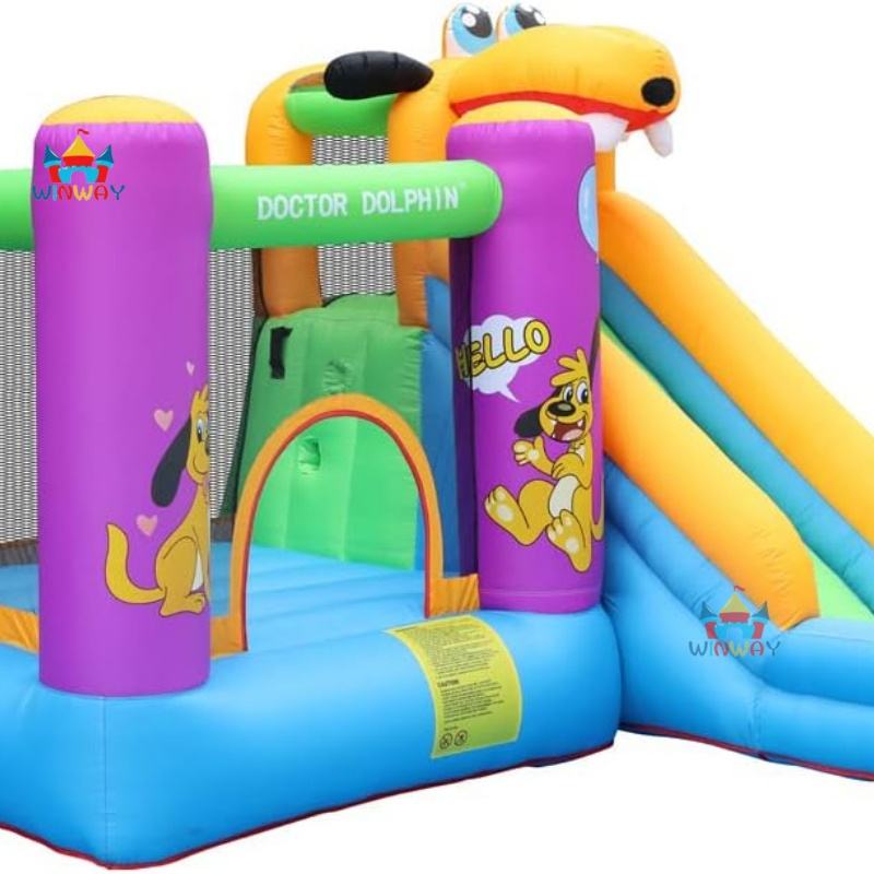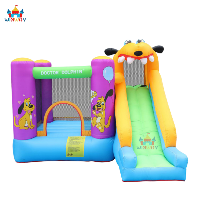 Château gonflable pour chiot en PVC d'extérieur pas cher avec toboggan et installation facile pour les enfants