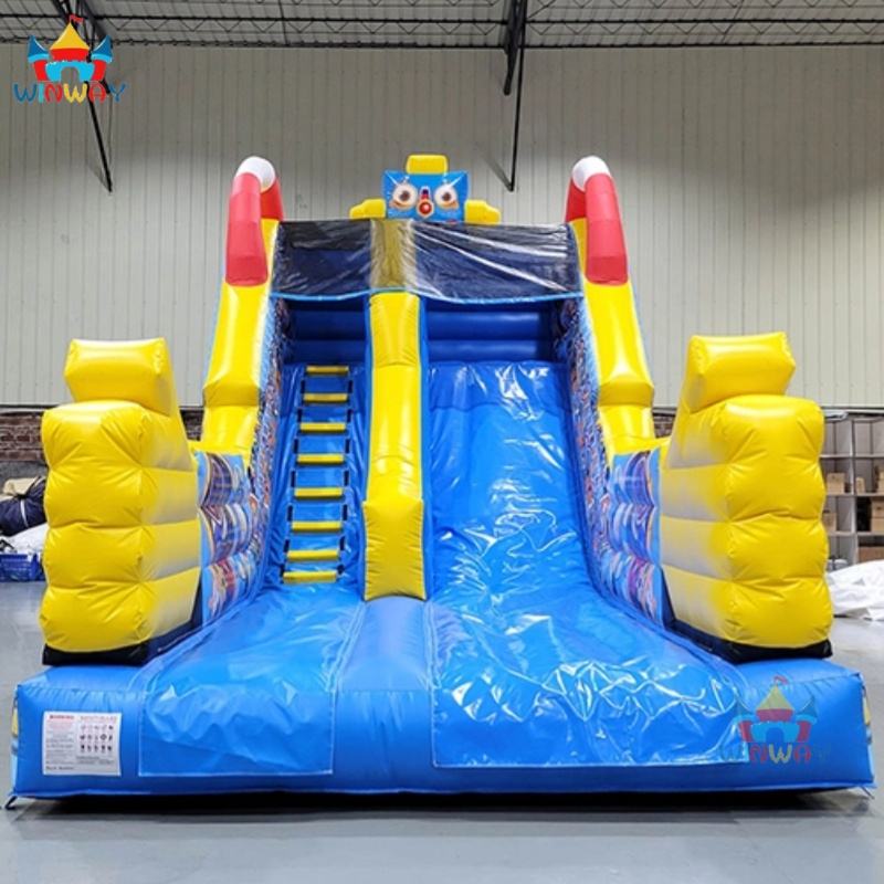Château gonflable d'extérieur pas cher pour le carnaval, avec double toboggan - Matériau PVC durable pour enfants et adultes, usage résidentiel et scolaire