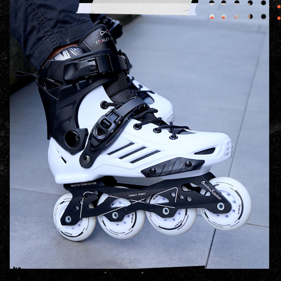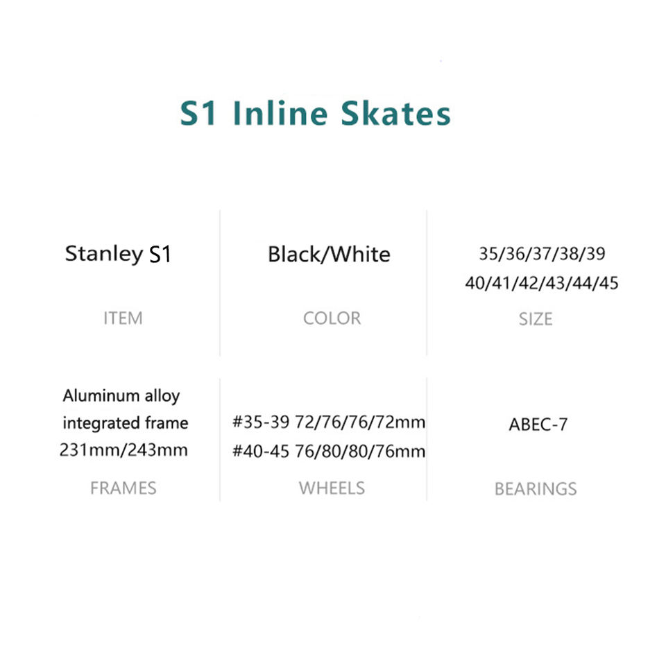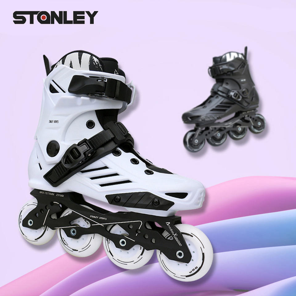 STANLEY S1 Patins à Roues Alignées Économiques Noirs Urbains Populaires Débutants Slalom Junior Adulte Coque Rigide 4 Roues Freestyle Roulements ABEC-7
