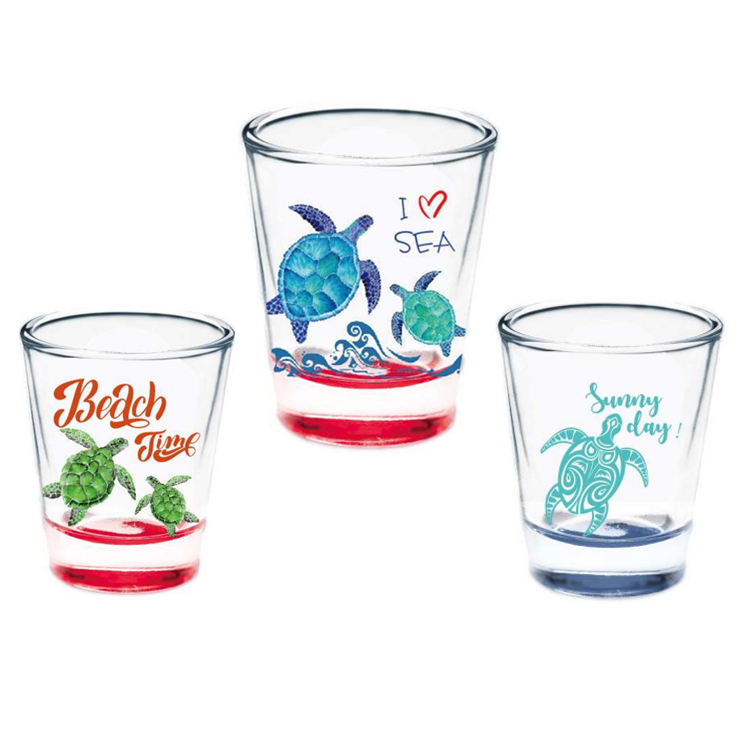 Verres à shot bon marché avec logo, design touristique de plage - Verres à shot imprimés tie-dye souvenirs de Malaisie, du Honduras, de Barbade, des Bahamas