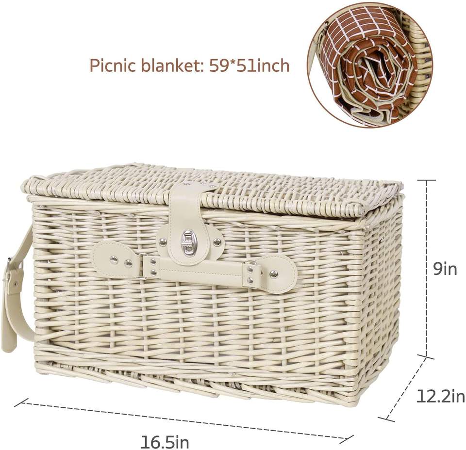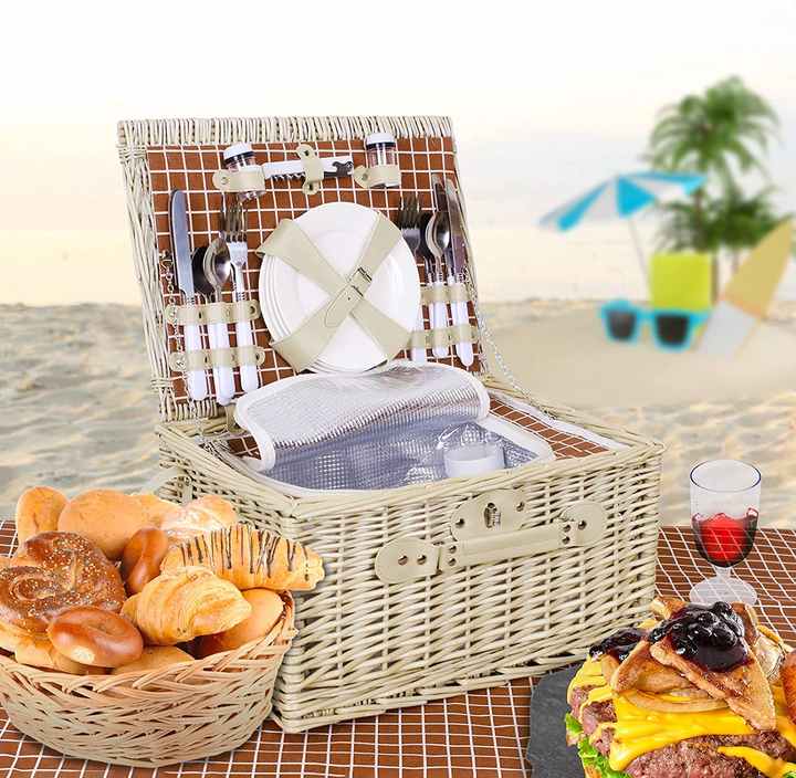 Panier de pique-nique pliable en osier gris pour 2 à 4 personnes, avec table et couverture, en plastique noir isolé, style luxe abordable