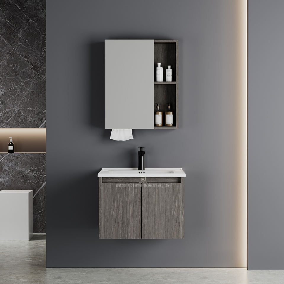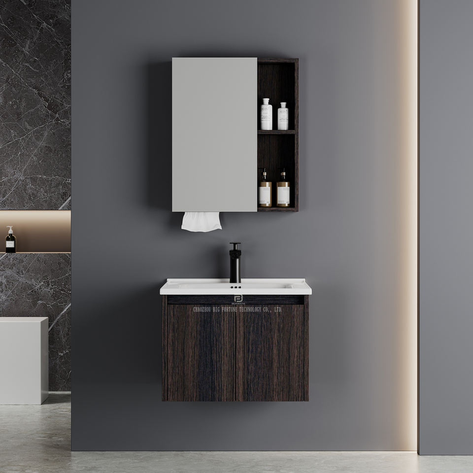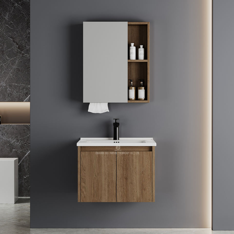 Meubles de salle de bain flottants modernes et économiques, étanches, à fixation murale, en PVC, avec lavabo en céramique pour hôtel