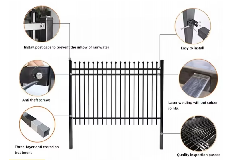 Clôture en métal moderne bon marché, galvanisée, à piquets, en fer forgé, pour route, jardin, terrain, école, aire de jeux, panneaux de clôture en acier, clôture de sécurité