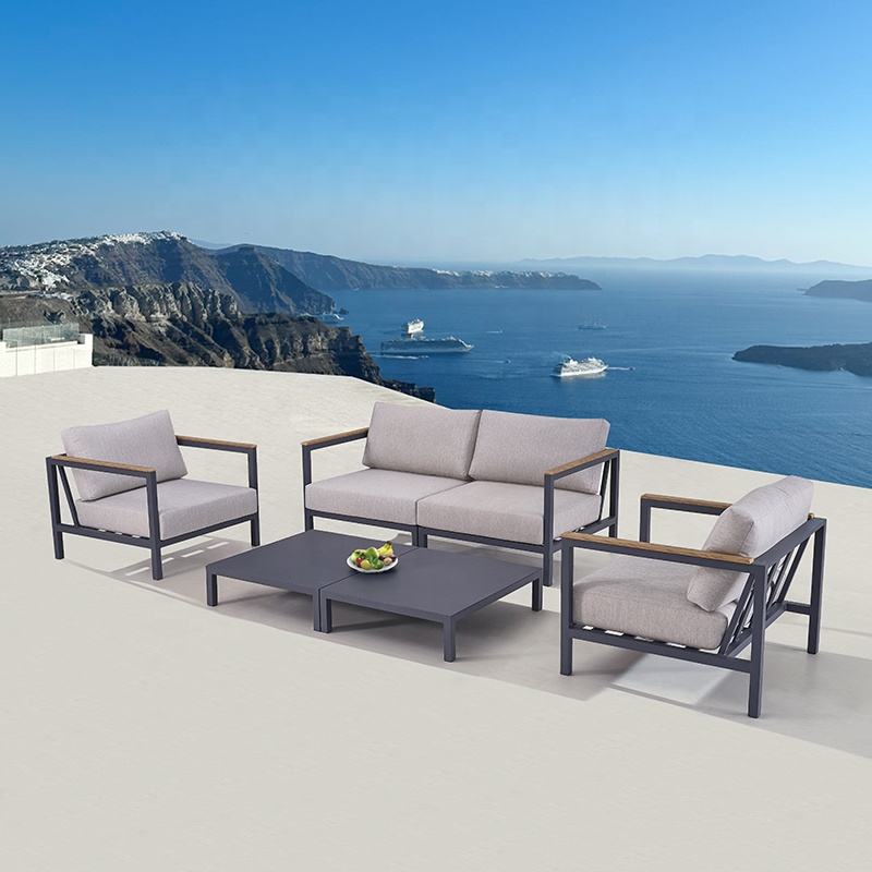 Canapé d'angle modulaire moderne et abordable pour patio, mobilier d'extérieur pour hôtel et jardin, ensemble de 4 pièces en aluminium pour l'extérieur