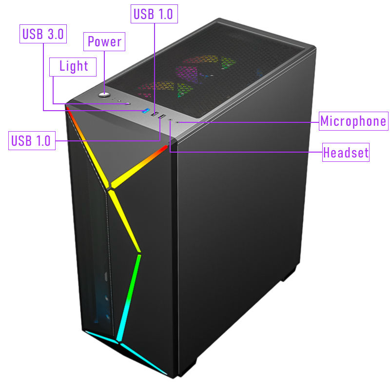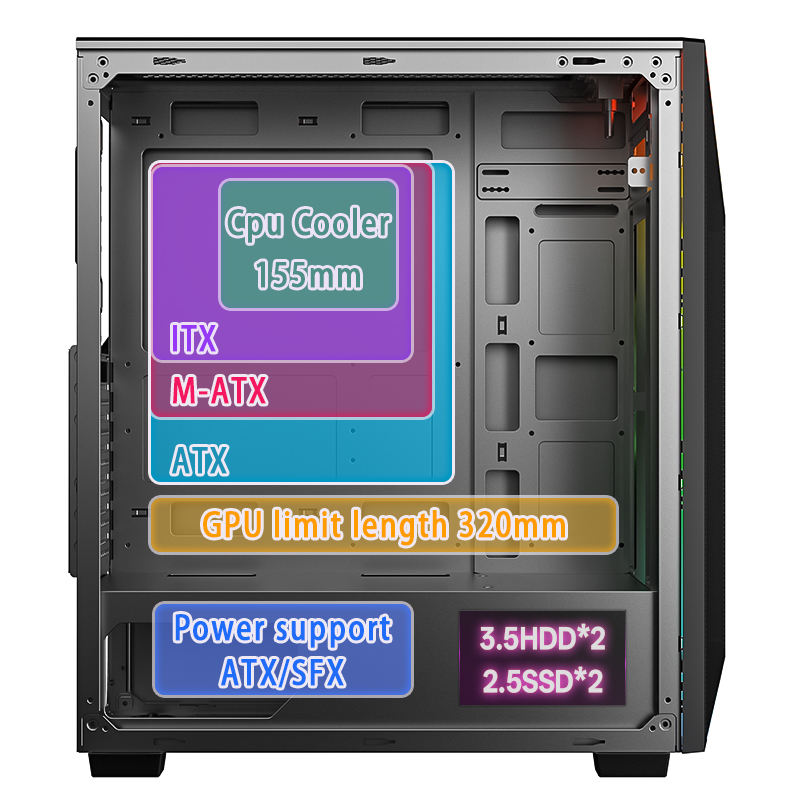 Caractéristique:Avec 4 ventilateurs de RVB et bande de lumière d'ARGB LED