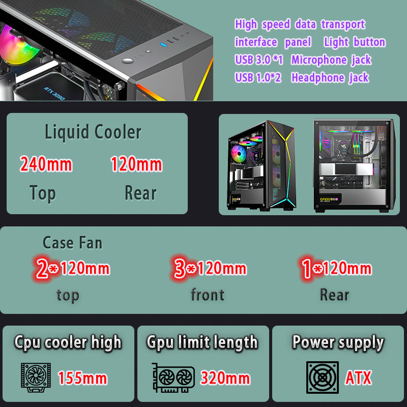 Nom du produit:Cas de PC d'ordinateur de jeu