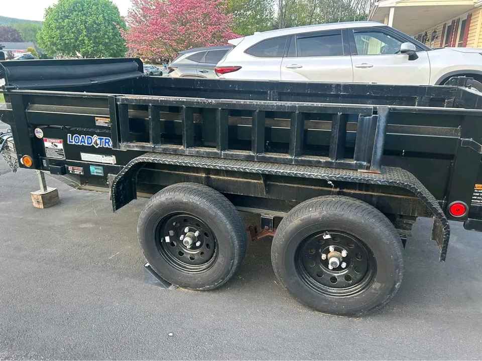 Remorque à benne basculante neuve et bon marché, 5 1/2 pieds de large par 10 1/2 pieds de long, livrée avec une bâche à cliquet, excellent état