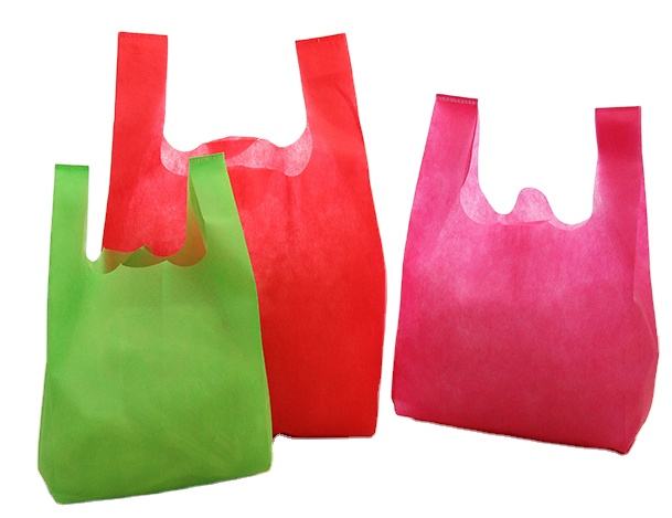 Cheap Nonwoven Recyclable Vest Carrier Bag/Customize Non Woven Vest Shopping Bags Luxury Packaging