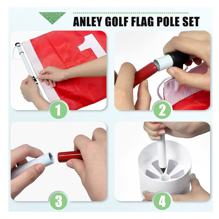 Tissu en nylon bon marché, terrain de campagne de haute qualité, trou, goupille de coupe, double face, drapeau de golf numéroté Mini Master personnalisé avec bâton