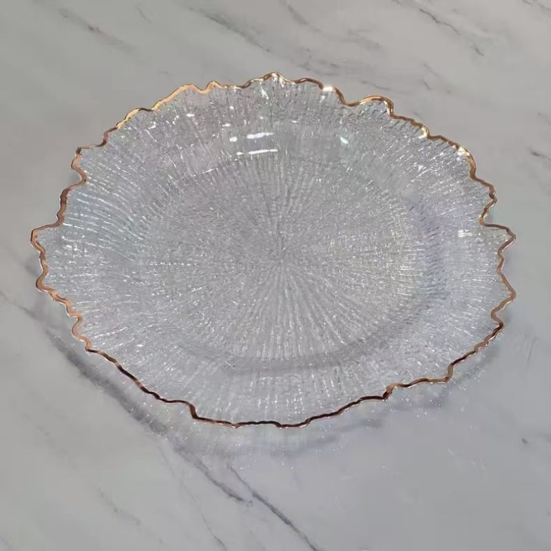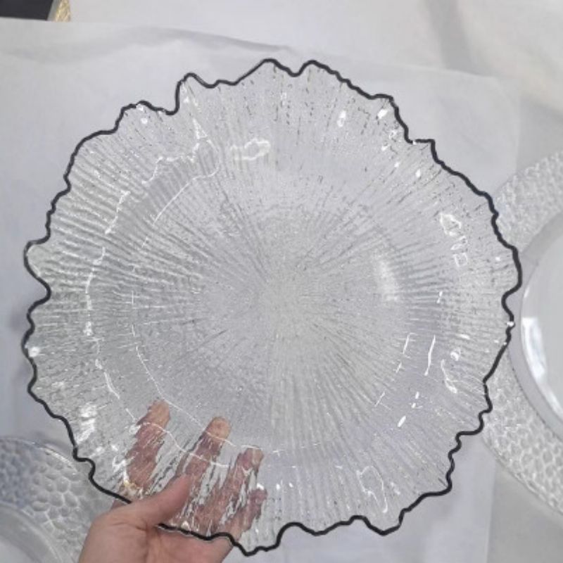 Assiettes de présentation en PP pas chères, 13 pouces, mariage, fête, vintage, transparentes, noires, argentées, dorées, bord en acrylique, plastique