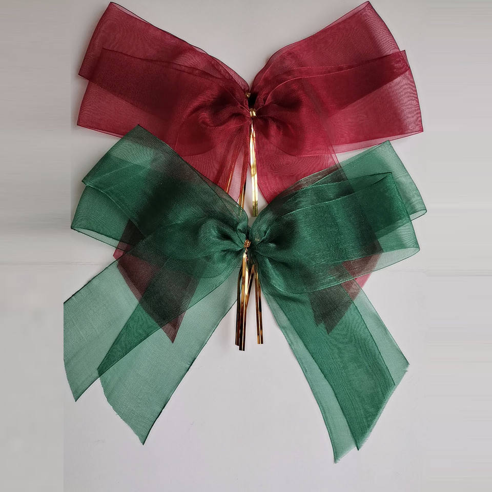 Ruban et nœud de cadeau personnalisé bon marché Arbre de Noël Rouge Grands rubans et nœuds de velours Arc de ruban élastique pré-fabriqué